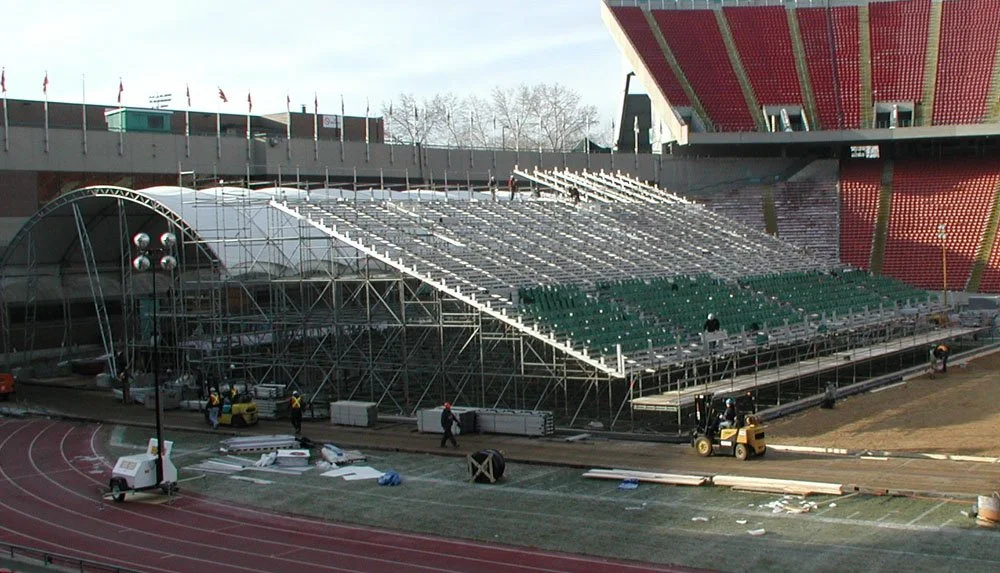 Heritage Hockey Classic – Edmonton 2003 Construction of custom-built VIP bleacher seating integrated into two-story lounge.